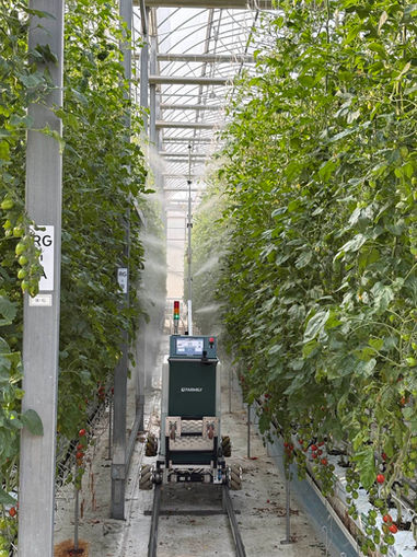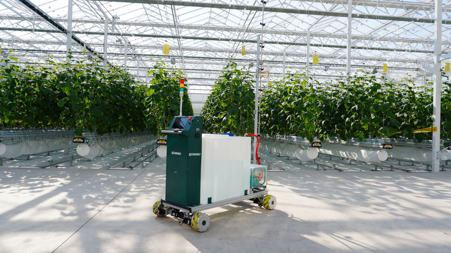 FARMILY-X S300은 작업자의 간단한 설정만으로 온실 내 레일을 따라 자동으로 이동하며 방제 작업을 수행합니다.